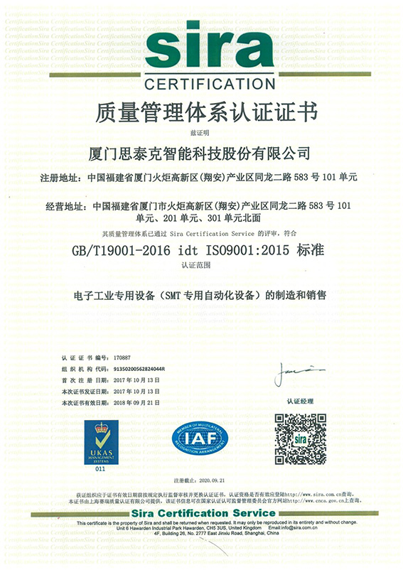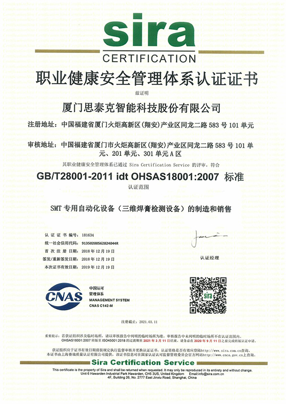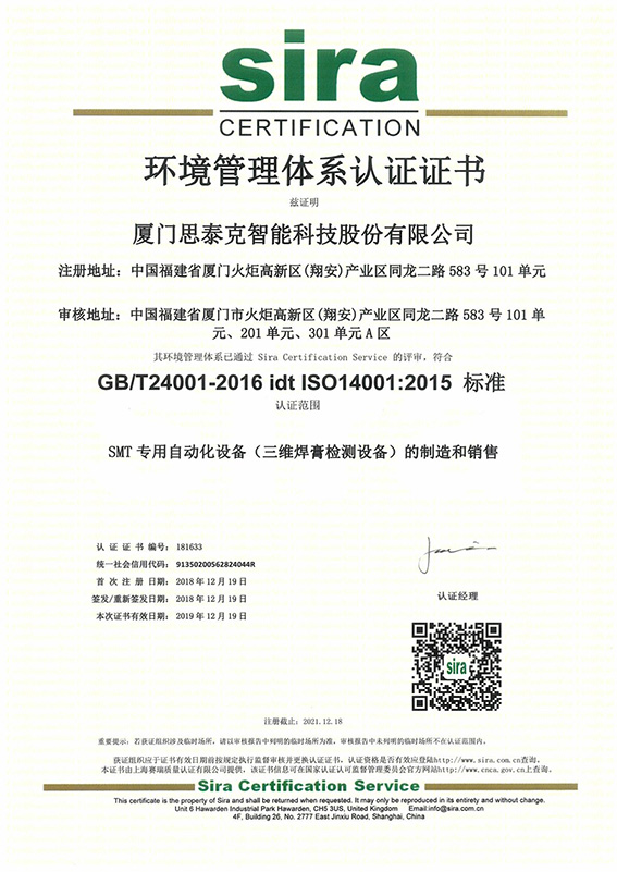 公司通過SIRA體系認證 發表時間 : 2018-12-19 公司通過SIRA體系認證 熱烈祝賀我司通過SIRA:質量管理體系認證、環境管理體系認證、職業安全健康管理體系認證。附圖 上一篇:鄭重聲明 下一篇:福建信息學院校友到我司參觀 返回
