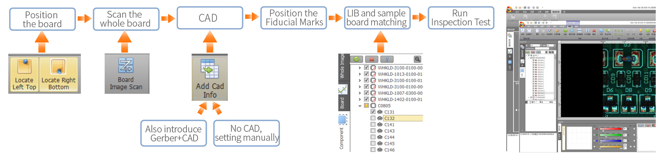 3DAOI has complete SPC analysis software and closed-loop control, ensuring that the inspection data of 3DAOI could be completely recorded and analyzed, and with highly accurate traceable results. 3DAOI three-point integration function enables the resolution of specific measurement value of a single PAD using Sinic-Tek' s 3D SPI and 3D AOI.